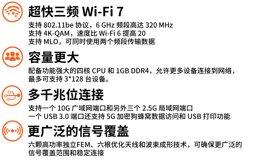 Wi-Fi 7 10Gbps三頻無線寬帶路由器
